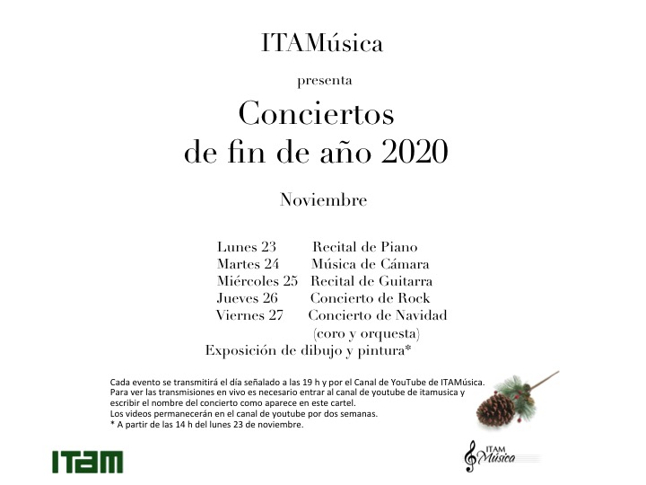 Lugar: Consulta más de ITAM Música en Youtube: https://www.youtube.com/channel/UC2M4jq25s-8X48qF71wSpfA